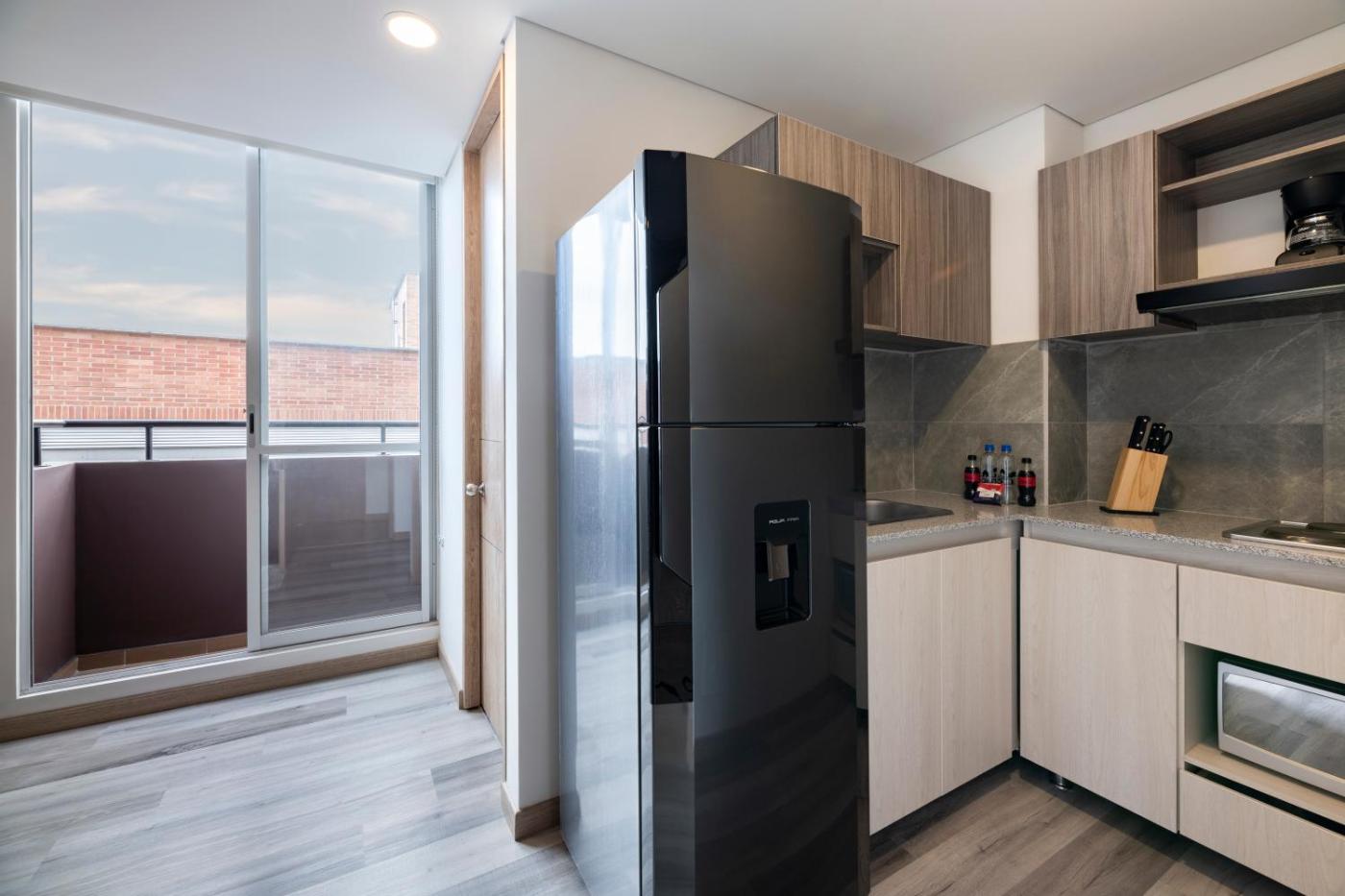 One-Bedroom Apartment. The apartment features 1 bedroom and 1 bathroom with a shower and free toiletries. Guests can make meals in the kitchen that comes with a refrigerator, kitchenware and a microwave. This apartment has a tea and coffee maker, a seating area, a flat-screen TV with streaming services and a balcony. The unit offers 1 bed. ;